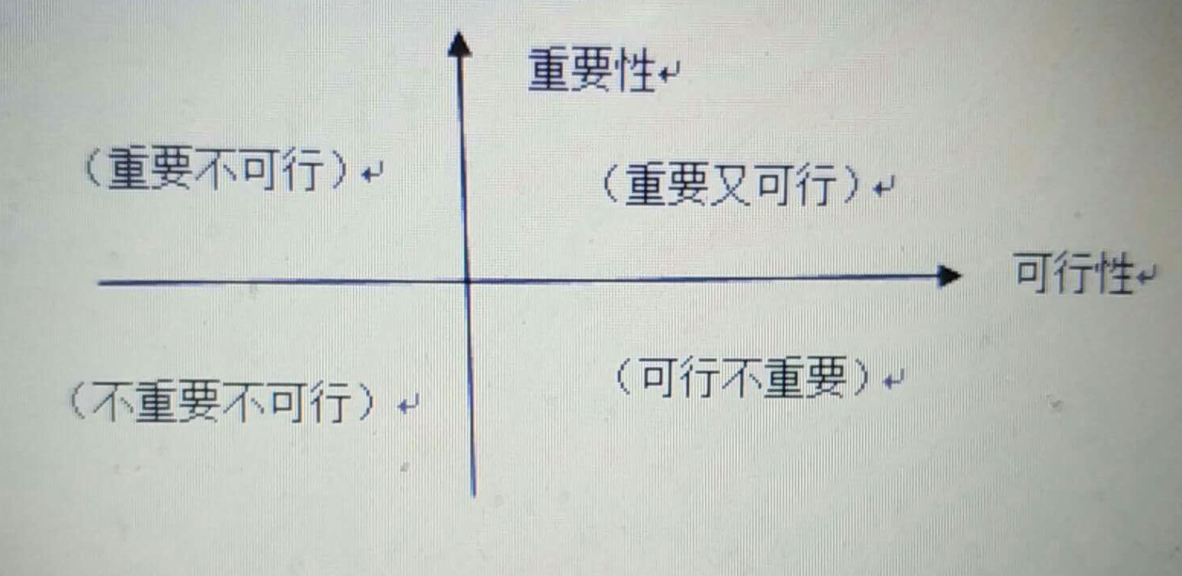 將題目中的五個選項和自己討論出來的幾個選項進(jìn)行同類項合并之后,按照重要性可行性的標(biāo)準(zhǔn)填入這個象限,每個象限不能超過三個意見。